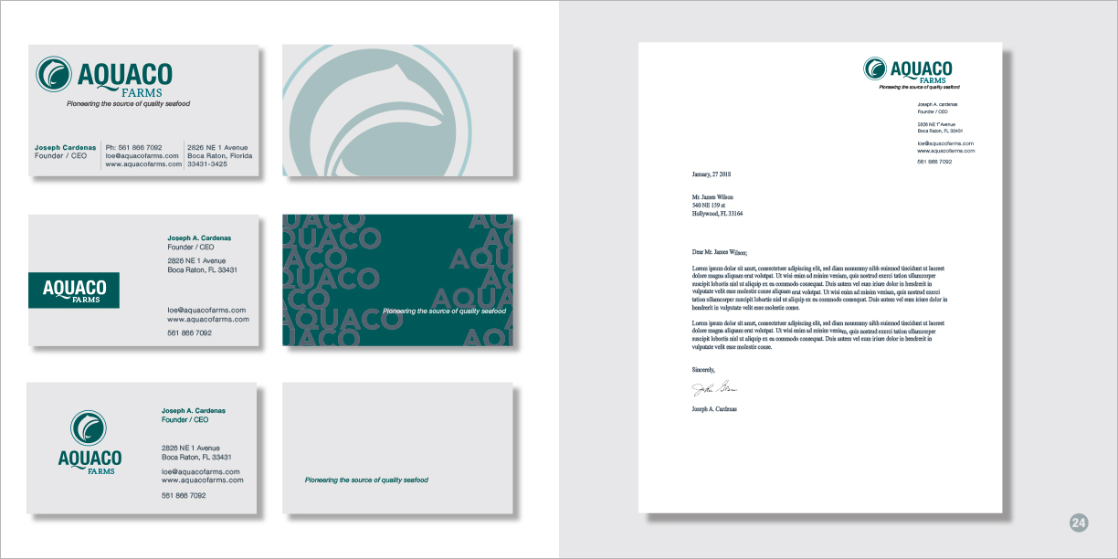 For this project, I redesigned the logo for Aquaco Farms and developed a cohesive set of brand materials, including a manual book and stationery system. I explored various combinations of typography and imagery to create a modern, contemporary aesthetic that aligned with the brand’s identity.